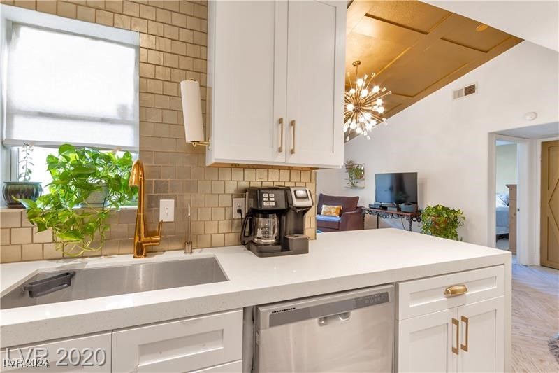 “As seen on Hit TV Show, Flip or Flop! !!! Beautiful upgrades and never seen before custom built-in wine rack with two brand new wine fridges. Vaulted ceiling, custom light fixtures, custom kitchen with granite waterfall counter, custom gold and opulent backsplash tile, stainless appliances, gorgeous herringbone wood look tile flooring, hotel like bathroom with custom fixtures and custom tile inset and walls, custom glitter flooring in bathroom, stackable washer and dryer leaving fully functional storage space in laundry area, custom wood look decking on patio. Patio has storage cabinet.